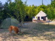 Op hete dagen biedt het zwembad verkoeling, met ligstoelen om heerlijk te ontspannen. De overdekte keuken is uitgerust met koelkast, kookmaterialen, servies, koffiezetapparaat, waterkoker en tafel. In een ander gebouw vind je toiletten en warme douches. Barbecuegebruik is mogelijk op dagen waarop het toegestaan is.